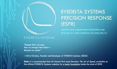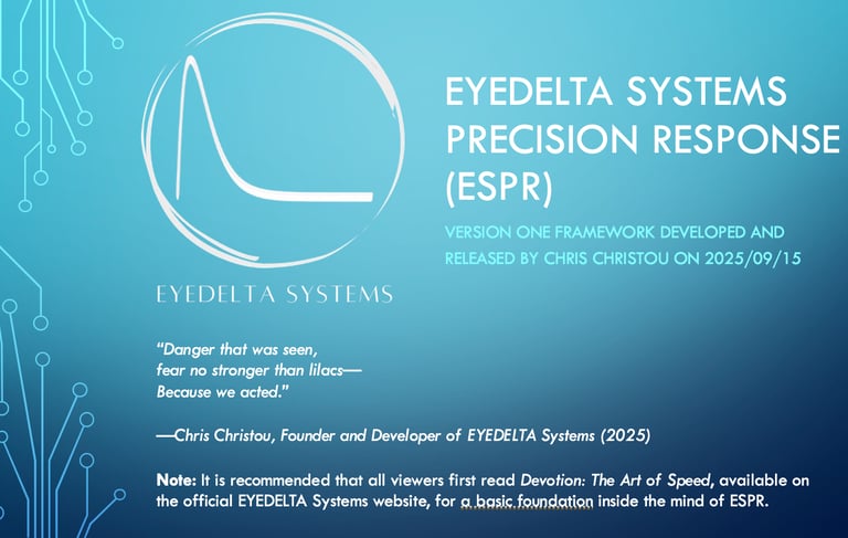 EYEDELTA Systems Precision Response (ESPR) is a novel technology designed to reduce the likelihood of vehicle collisions during emergencies, optimize emergency response times relative to risk, and give operators mathematically backed assurance on speed based on a variety of environmental, infrastructure, and human behavioural conditions. ESPR provides operators with the fastest possible speeds that can be driven based on a multitude of variables and notifies operators of current hazards or risks in order to better anticipate the unforeseen in real time.